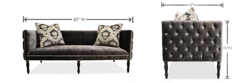 We have provided you with dimensions in all of our furniture descriptions. (W 83" | D 33" | H 33" | SEAT H 19.5" | SEAT D 27")