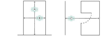 Here the Height (A) and Width (B) off all of your hallway and doorways. Measure your Entrance Clearance (C).