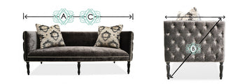 SOFAS: Measure the Width (A) and the Diagonal Depth (B)