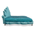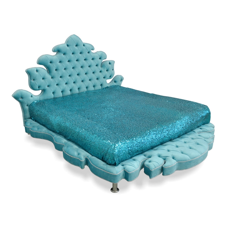 - Upholstered in Majesty "aqua" polyester/rayon blend velvet with crystal buttons and metal legs.