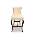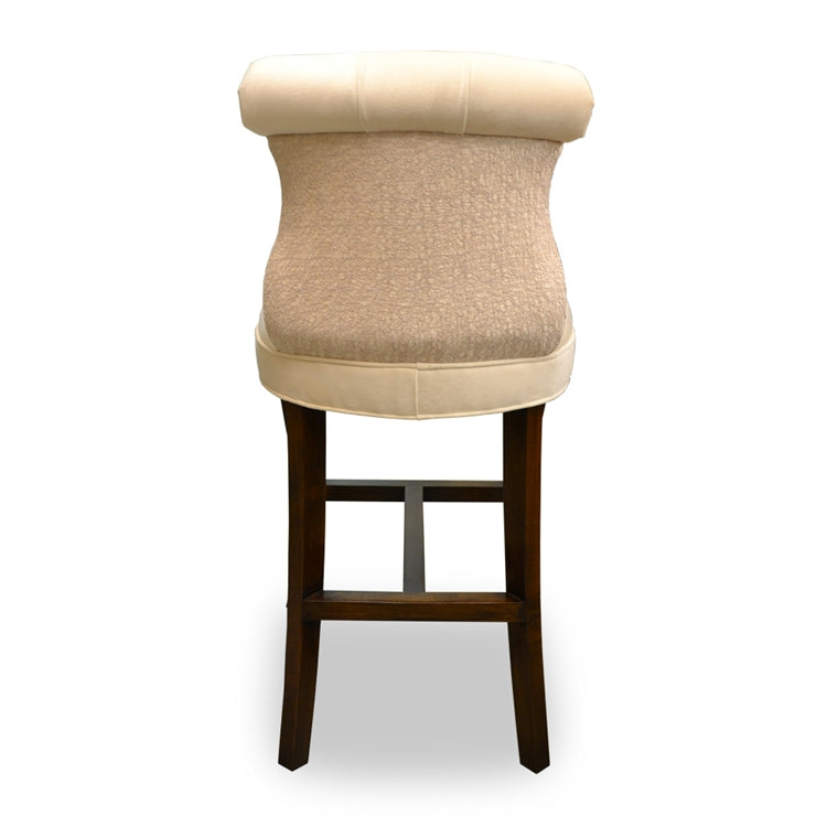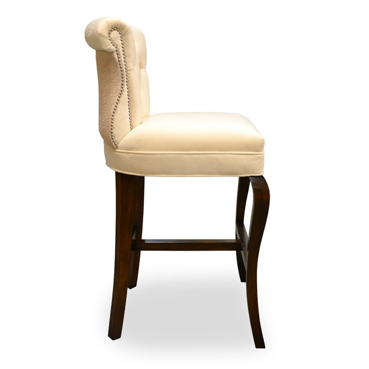 - Upholstered in Avenue "ivory" polyester velvet with matching netting overlay, silver nail heads and dark walnut finished legs.