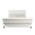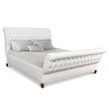 - Upholstered in Elegancia "white" leather with natural finished legs.