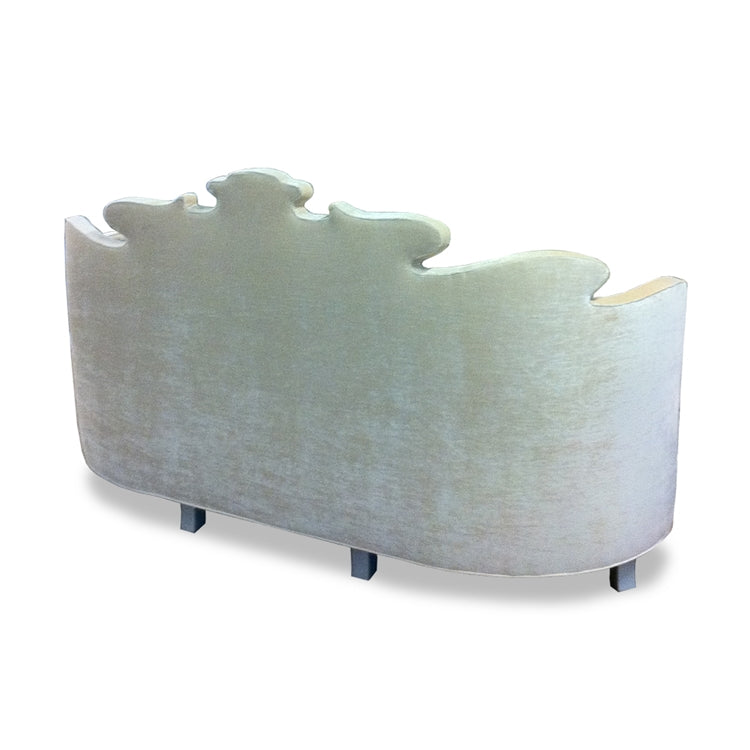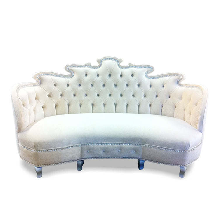 LUXOR "PEARL" VELVET WITH BLING BUTTONS, CRYSTAL TACKS AND SILVER LEGS.