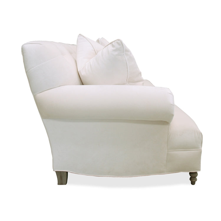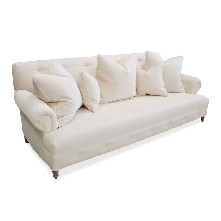 AVENUE "IVORY" MICROFIBER VELVET WITH SELF-BUTTONS AND LINEN ON ASH LEGS.
