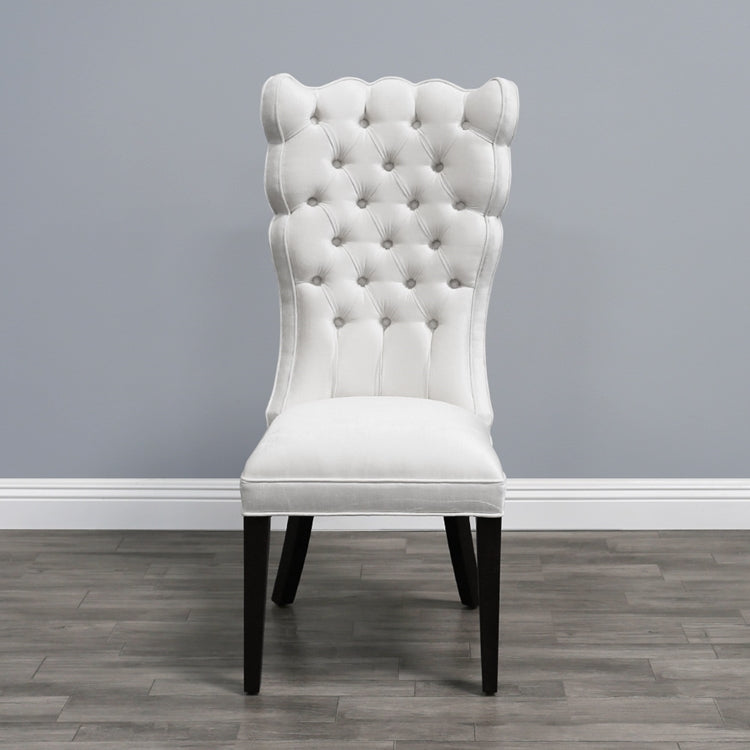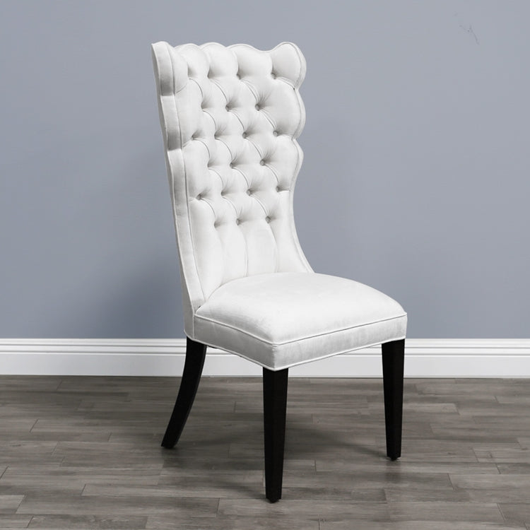 BENZ "WHITE" MICROFIBER VELVET AND DARK WALNUT LEGS.