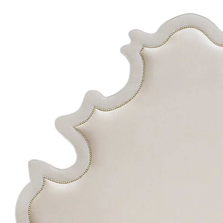 MAJESTY "ANTIQUE WHITE" VELVET WITH SHINY GOLD TACKS.