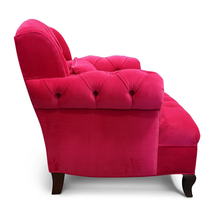 REGENCY "VERY BERRY" VELVET WITH DARK WALNUT LEGS.