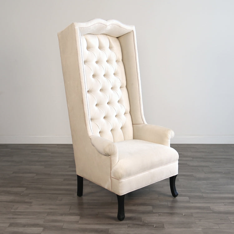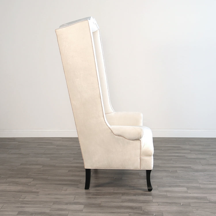 MAJESTY "ANTIQUE WHITE" VELVET WITH SHIMMER "SOAPSTONE" ACCENTS AND DARK WALNUT LEGS.