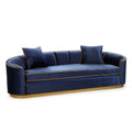 - Upholstered in Glamour "navy" polyester velvet with gold accents and gold finished base.